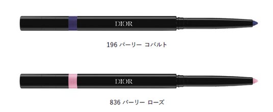 ペンシル アイライナー、ディオールショウ スティロ ウォータープルーフからも、パリの空をイメージした2つの数量限定色が登場。ライラックやブルーのパールが煌めき、星々が瞬く夜空のようなディープ ブルー 196 パーリー コバルトと、輝く夕陽に染まった美しい空を思わせるやわらかいローズ ピンク 836 パーリー ローズが眼差しを際立たせます。