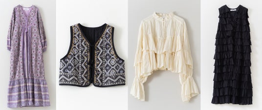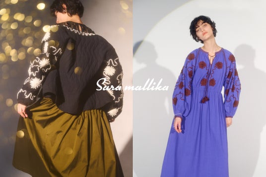 また、インドの職人たちによる精巧なビーズ細工や刺繍、プリント、縫製といった高度な技術をふんだんに盛り込んだアイテムにはエモーショナルなムードが吹き込まれています。