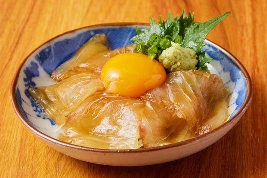 宇和島の鯛を醤油漬けにした逸品!卵を崩して絡めてお召し上がりください!