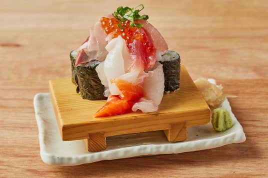 「大衆酒場 マル八」のコスパ抜群な豪華こぼれ寿司!巻き寿司に新鮮な海鮮が豪快に溢れた一品!