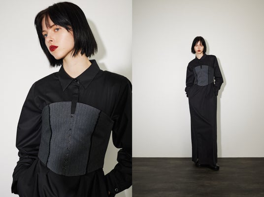 今季特におすすめしたいのは Corset bustierと合わせたスタイル。コーディネートにモダンなスパイスを加えるRIM.ARKらしいビスチェは飾りで施したフロントのホックはこなれ感を演出し、コンパクトながらディテールにも拘った1着です。