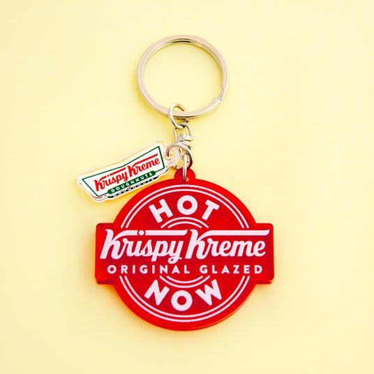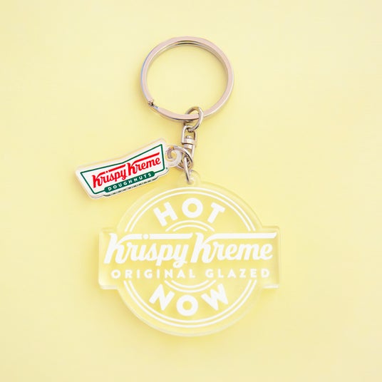 クリスピー・クリームのアイコン”ホットライト”のアクリルキーホルダー。