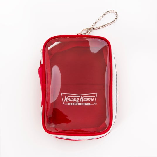 『クリスピー・クリーム・ドーナツ クリアポーチ』は、様々な用途に使える便利なポーチです。マチ付きのため、幅のある小物も収納することが可能です。透明な窓で中身が見えるため、お気に入りのアイテムを可愛く収納し持ち運ぶこともできます。ブランドカラーのレッドでポップに彩った、オリジナルグッズです。
