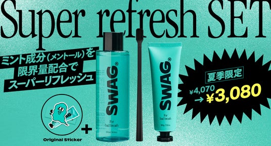 株式会社トリクルが展開するオーラルケアブランド【SWAG(スワッグ)】は、2024年8月9日(金)より夏限定「Super refresh SET(スーパーリフレッシュセット)」を公式オフィシャルサイトにて発売します。