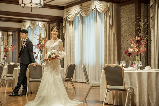 その一つである九段会館テラスは、登録有形文化財建造物である旧九段会館の貴重な技術・素材を活かして保存・復原を行った保存部分と、新築したオフィスビルの新旧が融合した建造物です。当社では、由緒あるその趣を残しながらも、長年紡がれてきたその歴史と現代のエッセンスが光る特別なウエディングプロデュースを実施してまいりました。