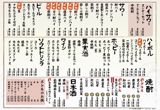 漁からお店までをすべて自社で一貫して”船直鮮魚”をコンセプトにする『アカマル屋鮮魚店』。この度の新メニューでは酎ハイ、ウーロンハイをはじめとしたサワーやハイボールなどが税抜399円~となり、より気軽に「鮮魚料理×アルコール」をお楽しみいただけるようパワーアップいたします。