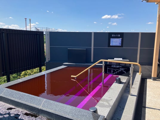 花景の湯の露天風呂に、週替りでメンバーカラーの替り湯になります。