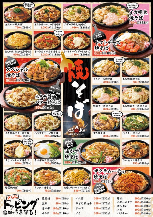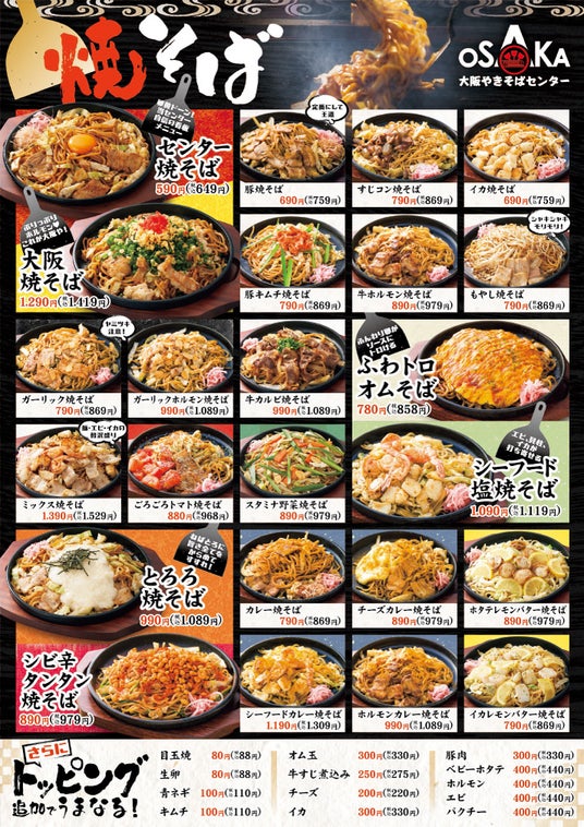 10種類のソースで仕上げた焼そばメニューが50種類!!業界No.1のメニュー数を誇る「大阪やきそばセンター」が西中島に今年オープン!いま、やきそばが熱い!