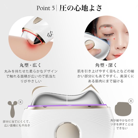あてやすい独自開発形状でお肌への高い密着性を実現。 カッサプレートの角型のほうは細かい部分にあてやすくピンポイントに深く刺激して、丸型のほうは触れる面積が広いので肌当たりがやさしくて、短時間でケアできます。