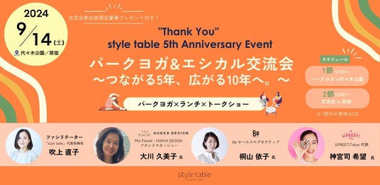 株式会社フラッグ(東京都中央区 代表取締役:吹上直子)が運営するエシカルセレクトショップブランド「style table」(スタイルテーブル)は、2024年8月31日に5周年を迎えます。