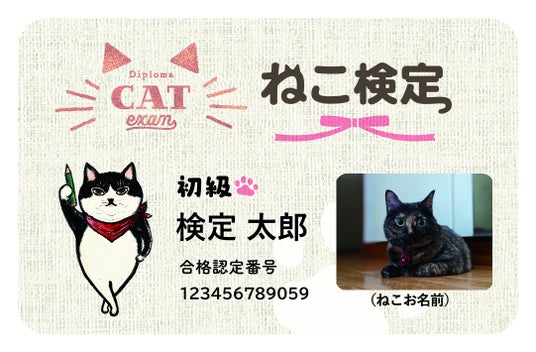 愛猫の写真も入れられる免許証サイズの合格認定カード(有料)