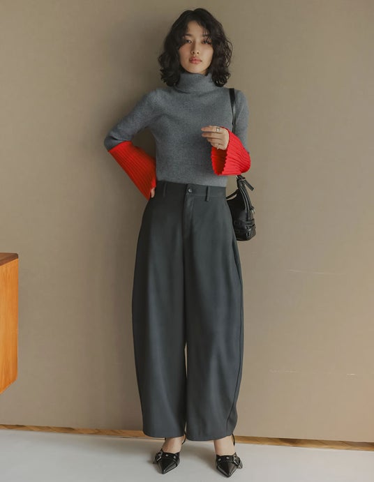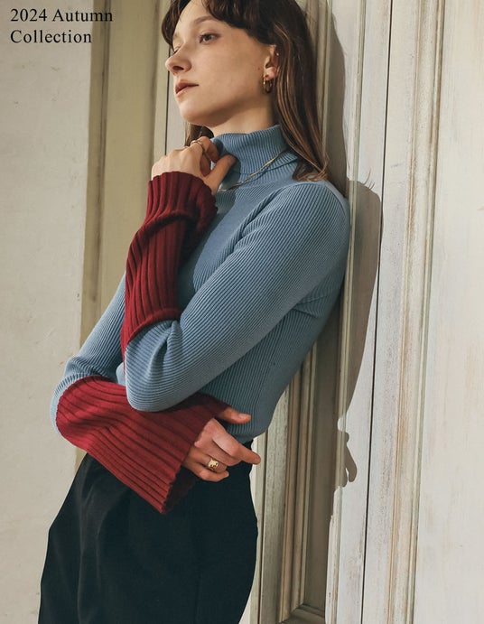 [2024 AUTUMN PRE ORDER]選べる2TYPE配色or無地フレアスリーブリブニットトップス