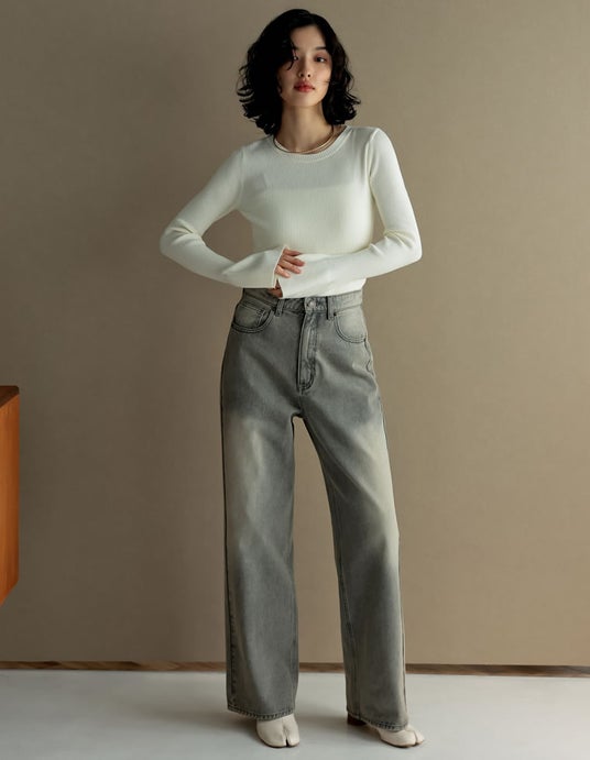 デコルテ周りが綺麗見える、絶妙なクルーネックも洗練された印象に。