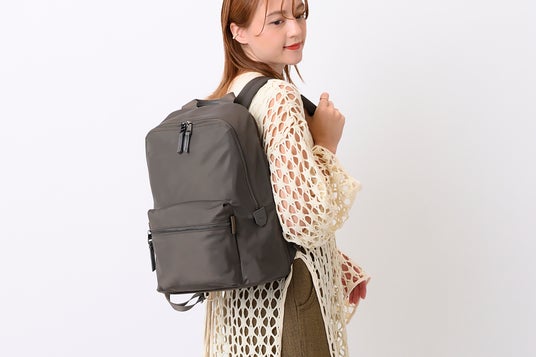 本体には軽量で耐久性に優れたナイロンツイルを使用しており、MIDIUM サイズ (No.15571) 540g/ A4 JUST サイズ (No.15572) 700gといった軽やかなリュックです。スリムなシルエットのため小柄な女性の背幅でもはみだすことなく、すっきりと持ち運ぶことができます。