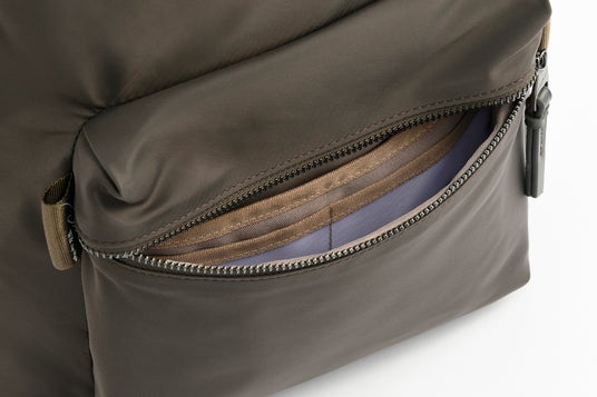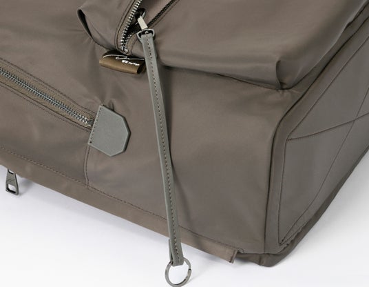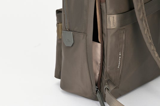 リュックを下ろさずに本体の荷物を取り出せる「本体アクセスジッパー」を左右サイドに配置しました。また、リュック背面には洋服のポケットのようにスマートフォンやパスケースを出し入れできるポケット「napping pl.」が付いており、ポケットがない服装時も安心です。