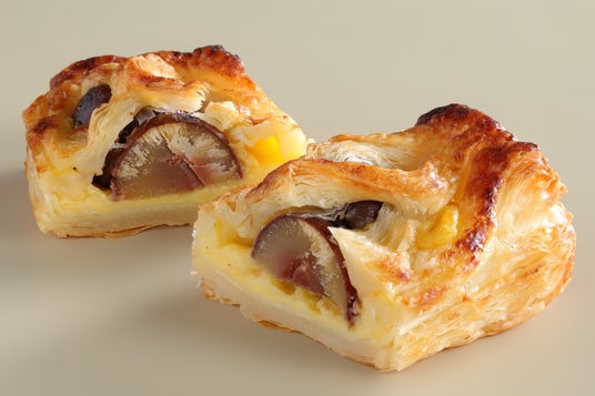 渋皮栗の甘露煮とカスタードクリームをパイ生地で包み、焼き上げました。バターが香るサクサクのパイと栗の芳醇な味わいをお楽しみください。