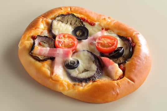 自家製のトマトソースと茄子、ベーコン、トマト、オリーブ、チーズをトッピングし焼き上げた惣菜パン。お酒のおつまみとしてもおすすめです。