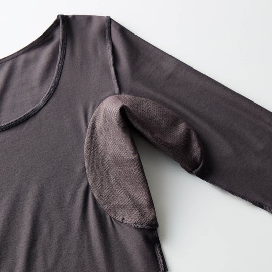 アウターから袖口がチラ見えしにくい九分袖商品名/汗取りインナー・汗取りパッド付きクルーネック九分袖(大汗さん)