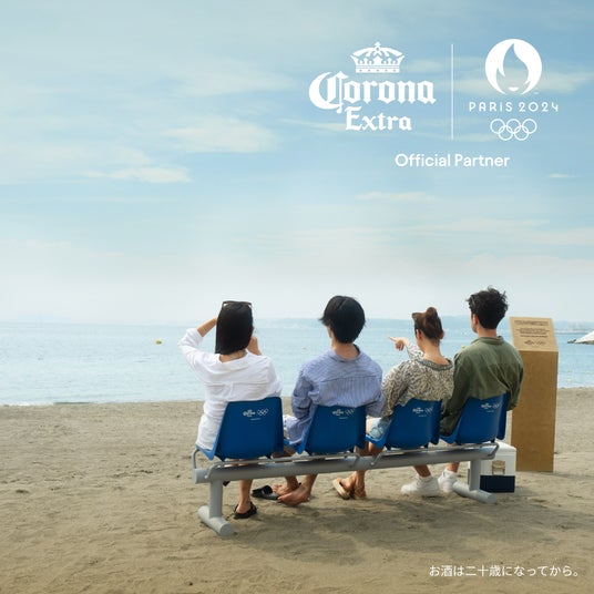 パリ2024オリンピック会場と同じ観客席がアジアで唯一、森戸海岸に8月31日(土)まで登場!この夏は美しい海が一望できる絶景スポットで、コロナビールを片手に極上の「ゴールデンモーメント」を堪能