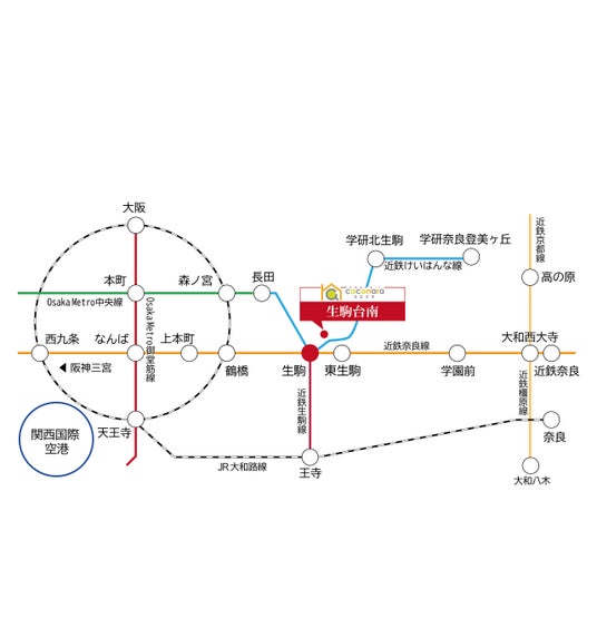 また、近鉄生駒駅からは大阪難波まで24分、神戸三宮へは乗り換えなしでアクセス可能です。