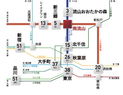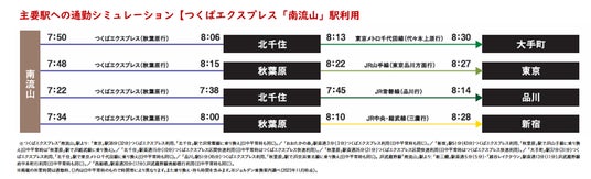 つくばエクスプレス開業で、一気に東京へのアクセスが改善。年々、流山市に移住者が増えています。物件から徒歩7分のつくばエクスプレス「南流山」駅より「秋葉原」駅まで直通26分。毎日の通勤・通学や、休日のお出かけに便利なポジションです。