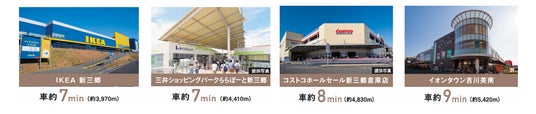 ショッピング・飲食・エンターテインメントなど、多彩なジャンルの店舗が集結した複合商業施へ車で約10分以内に快適アクセス。