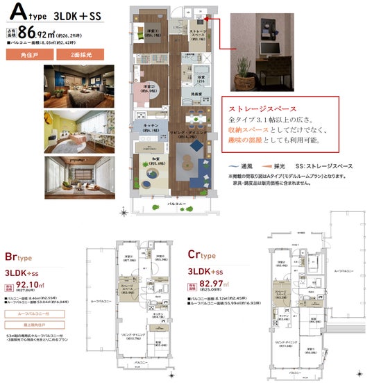 全邸が専有面積80平方メートル 超+ストレージスペース(SS)・南向き。