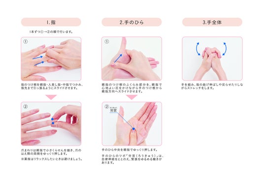 ハンドマッサージ How To コリをほぐし、リフレッシュ
