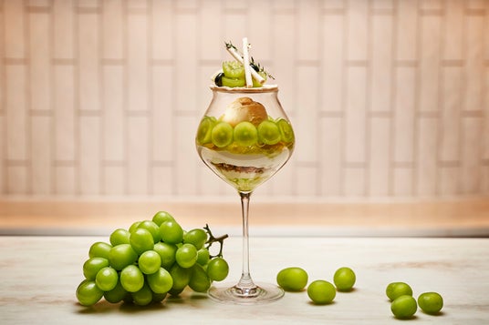 シャインマスカットの上品な⽢みとライトグリーンが爽やかな目にも美しいパフェ。