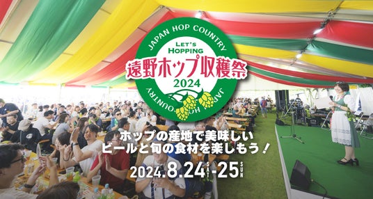 遠野ホップ収穫祭実行委員会は、ビールの原料であるホップの収穫を祝う「遠野ホップ収穫祭2024」を来る8月24日(土)~25日(日)に開催します。遠野産ホップを使用したビールや遠野の旬の食材が味わえる他、ホップ畑を見学する体験会などが開催されます。