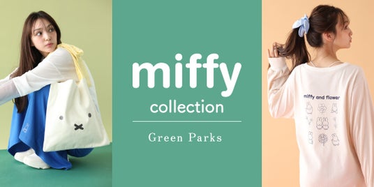 Green Parksのなかでも人気コラボのひとつである「ミッフィー」。大好評につき今回はラインアップを増やし、“Casual”と“Feminine”をテーマに第1弾、第2弾あわせ全51型を販売いたします。