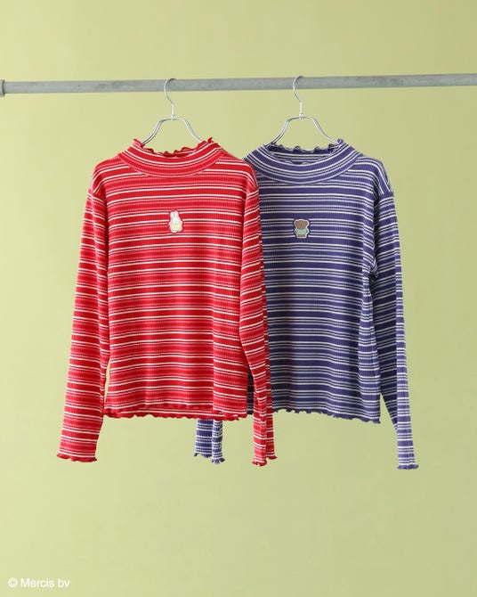 8月発売の第1弾では全24型。“Casual”シリーズは、ボーダープルオーバーやカットリブスカート、ドラムショルダーバッグ、配色ラインソックスなどトレンドのスポーツテイストを落とし込んだアイテムに。くわえてカラーバリエーション豊富な雑貨も注目ポイント。ミッフィーとボリスのフェイスプリントを施したリボンショルダーバッグやサークルキーリングなどが登場。