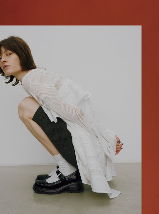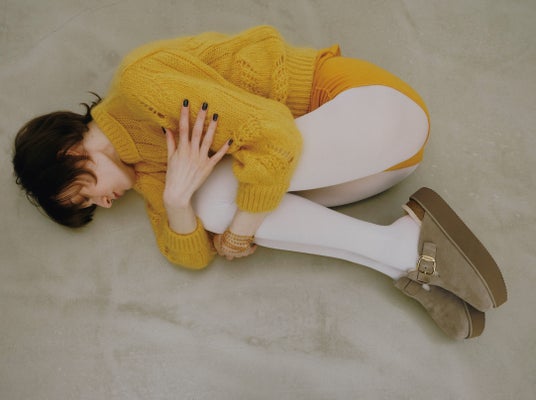 さりげない肌見せやシアーなタイツなど、スタイリングで女性ならではの表情ものぞかせて、大人の遊び心をプラスしています。