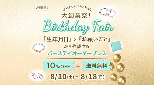 8月はマルラニハワイの創業月間! 日頃からのマルラニハワイのご愛顧に感謝し、マルラニハワイ 夏のバースデイフェアを行います。