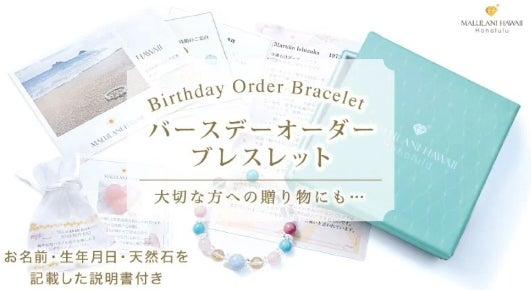 マルラニハワイ不動の人気を誇る「バースデイオーダーブレスレット」は、一人一人の生年月日より「守護石」を選定し、お願い事の石を組み込んで作成する、世界でたったひとつの天然石ブレスレット。