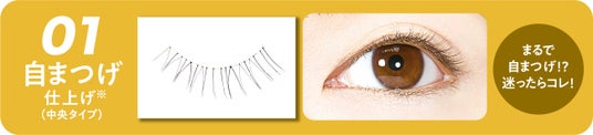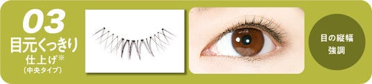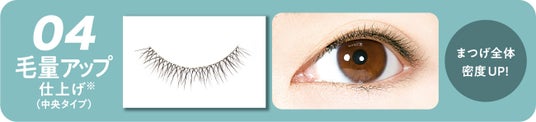 まつげ全体の密度をアップし、自然なアイライン効果があるデザイン。中央タイプ。