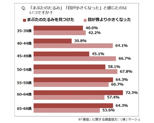 「目が小さくなった」と感じている人は40代で60%と急増傾向