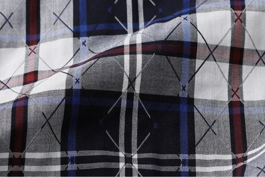 ニューヨーカータータンとダイヤ格子を組み合わせ、ジャカード織りで表現した「ジャカードダイヤモンドニューヨーカータータン」生地はシーズンを象徴するオリジナリティのあるデザイン。コーディネートの主役になる存在感あるタータン柄です。