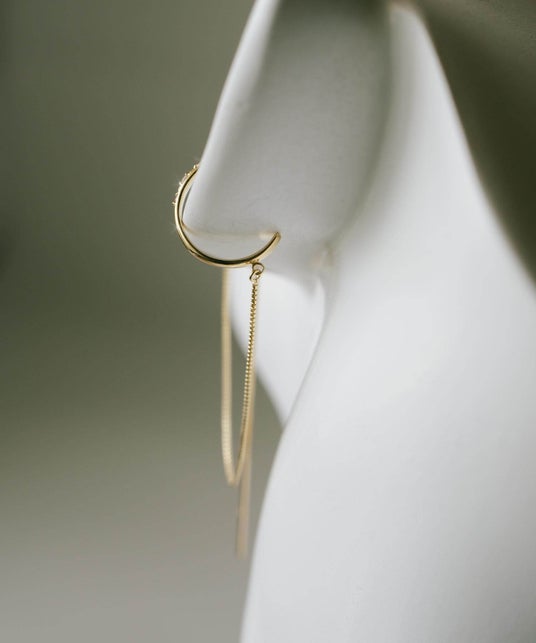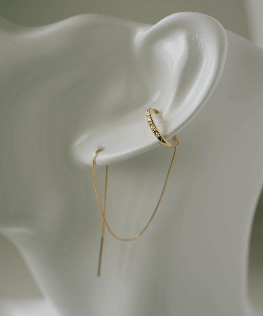 モダンで洗練された美しさを追求したジュエリーが新登場。輝くK10ゴールドのチェーンが耳元に繊細な光をもたらし、ジルコニアの輝きが華やかさをプラスします。ピアス穴に通せる華奢なベネチアンチェーンが、揺れる度にエレガントな煌めきを放ちます。