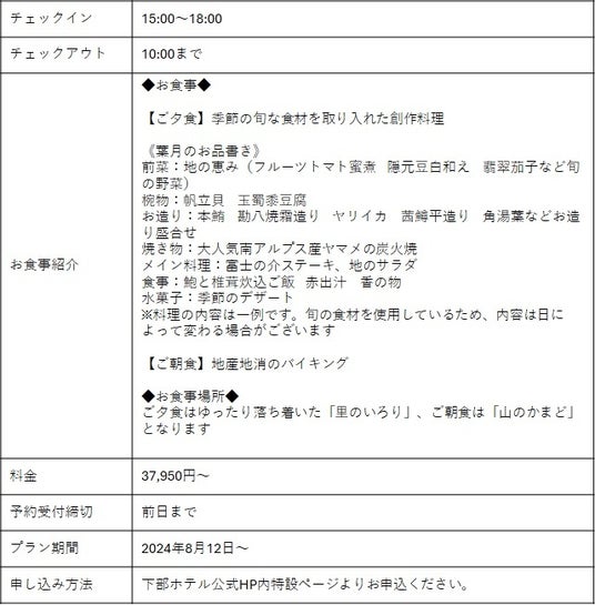 山梨県南巨摩郡身延町にて旅館業を営む「下部ホテル」(株式会社下部ホテル/代表取締役社長:矢崎道紀/山梨県南巨摩郡身延町上ノ平1900)は2024年8月12日(月) より、現代人に向けた新しい湯治体験「シン湯治・リカバリープラン」(以下、本プラン)の販売を開始しました。