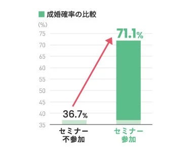セミナーに参加した方は不参加の方に比べ、成婚確率が34.4%UP!