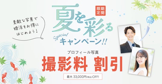 全国1900店の相談所をつなぐTMSグループの直営結婚相談所であるTMSパートナー(https://www.tms-p.co.jp/)が、夏を彩るキャンペーンとしてプロフィール写真撮影料(最大33, 000円(税込))の割引を実施いたします。