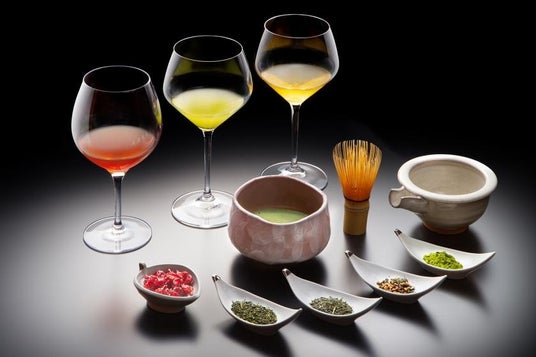 繊細な日本料理が融合するフレンチ懐石コースに合わせて、日本一の茶どころ静岡県産の玉露、煎茶、青茶、和紅茶、抹茶を提供します。ワイングラスや抹茶椀で豊かな香りと共に、和のペアリング。