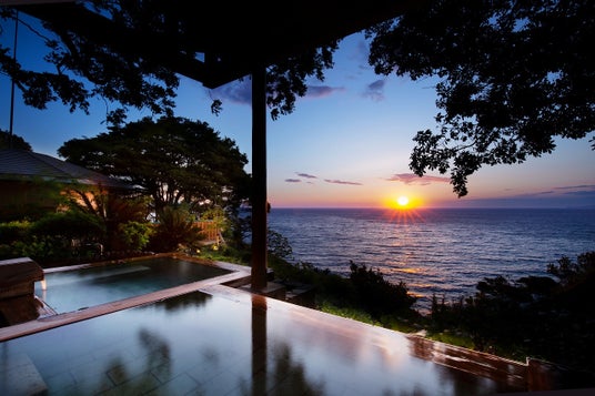 静かな海沿いの北川温泉(ほっかわおんせん)高台から、海に昇る朝日と満月が描く光の道「ムーンロード」を望む全室オーシャンビュー、大人の隠れ家リゾート。客室やレストラン、露天風呂から、空と海の青が溶けあうような絶景をご覧いただけます。