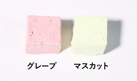 「グレープマシュマロ」は、カシスピューレを加えており、本物のブドウのような渋みや酸味など風味に奥行きがある大人なマシュマロに仕上げました。ジュワっと溶ける舌触りが贅沢な一品です。「マスカットマシュマロ」は、濃縮果汁を加え、濃くて甘い味わいが特徴的です。マスカットを頬張った時のような幸福感を、口いっぱいに感じていただけます。