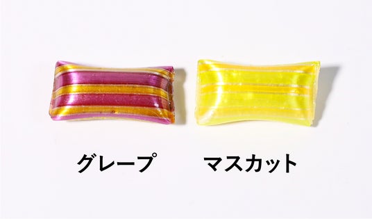 「グレープチョコキャンディ」は、グレープフレーバーにブランデーフレーバーを混ぜた、高級感のある味わいが特徴です。「マスカットチョコキャンディ」は、ホワイトチョコを使用しており、甘く優しい味の中に、まるでマスカットを食べた時のようなジューシーな香りが広がるキャンディです。