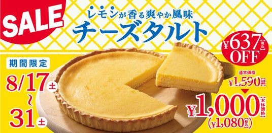 8月17日(土)~24日(土)には、「チーズタルト」が“税込691円引き(税抜950円)”になる超お得なクーポン配信キャンペーンを開催!店頭特価価格よりもさらにお得にご利用いただけます!