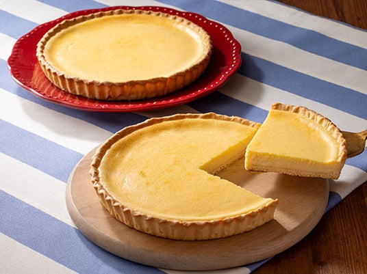チーズタルトは、2024年1月末にチーズアパレイユを増量し、今まで以上に風味も量も満足いただける商品へとリニューアル!お店のオーブンで毎日1台1台丁寧に焼き上げた、チーズの風味豊かなFLOの定番人気商品です。マイルドな酸味のためお子さまも食べやすく、ご家族でお楽しみいただけます。