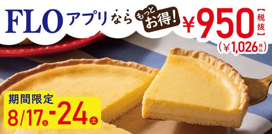 また、2024年8月17日(土)~24日(土)の8日間、FLO公式アプリ限定で「チーズタルト」が税込691円引き(本体価格950円)のクーポン配信キャンペーンを開催する他、同期間に開催する「FLOアプリ4周年キャンペーン」中にアプリを提示してお買い物いただくと、FLOマイルが\3倍/に!
