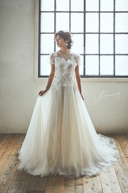 10~30代の幅広い年齢層から支持を集めるituwa(イツワ)の、鑑賞するだけのアートのようなドレスではなく、煌めくビーディングや、上質な光沢や透明感あふれるマテリアル、その「ヒト」の所作により、美しさを際立たせながらも、その人らしさを表現できる「余白を残した一着」を実際にご覧いただけます。